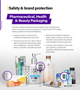 Safety & brand protection Pharmaceutical Health & Beauty Packaging To remain competitive pharmaceutical and health & beauty companies must conform to evolving track and trace regulations The good news is HP TIJ makes achieving compliance simple and affordable by: • Helping manufacturers easily include serialization/variable data to their codes • Empowering manufacturers with consistent high print quality bar codes and text supply chain management is improved while the ability to counterfeit is drastically decreased • • Bolstering brand loyalty and and appeal to today’s socially conscious consumers with the ability to trace products via quality 2D codes throughout the entire supply chain Providing a a a direct channel to communicate with customers 2D codes make transparency effortless and greatly diminish brand erosion 14 Coding & Marking