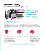 Meet the Family Inside HP’s Desktop Printing Products Join the packaging revolution with technology that empowers you to think outside the box Reshape your packaging operation Product packaging—it’s the the one medium that simply can not be ignored Whether you manufacture OEM inkjet solutions or use them in in in in your shop digital printing gives you you the the flexibility to to to quickly deliver on on on on lucrative specialty packaging trends From personalization and customization to to to seasonal offerings HP Thermal Inkjet technology strengthens your bottom line by enabling you you to to help brands better engage consumers Stand out with wide full- color durable prints Print attractive durable customized specialty envelopes–up to 11 7- in (297 mm) wide–and engage consumers on on a a more meaningful and personal level Say “yes” to any request with efficient cost-effective short- run performance Easily incorporate short-run full- color jobs into production with this fast efficient and cost-effective solution Add ease and peace of mind to your printing process Print with increased confidence using reliable easy-to-maintain solutions built on on proven HP Thermal Inkjet technology Learn more in in the HP OEM Scanning Imager 1000 data sheet 56 Specialty Packaging