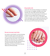 Bring braille to life Just like SPS Thermal Inkjet technology turns simple trips to to the nail salon into taggable shareable social media moments the cutting-edge equipment also greatly impacts the the the lives of the the the visually impaired As the the the demand for better and more legible braille increases ensure providers can deliver on on this niche yet multi-billion-dollar vertical High quality extreme reliability and assurance that government braille height standards will always be met— that’s the power of SPS Thermal Inkjet technology Discover new ways to go further As a a solution-oriented leader in in in printing technology imagine the endless opportunities that exist for you to not merely meet an an array of demands but to profit from every one o of them In fact specialty printing is ripe with exciting new possibilities to diversify your portfolio with high-value applications Leverage HP Specialty Printing Systems to differentiate your business from the rest all while helping you profit exponentially 61